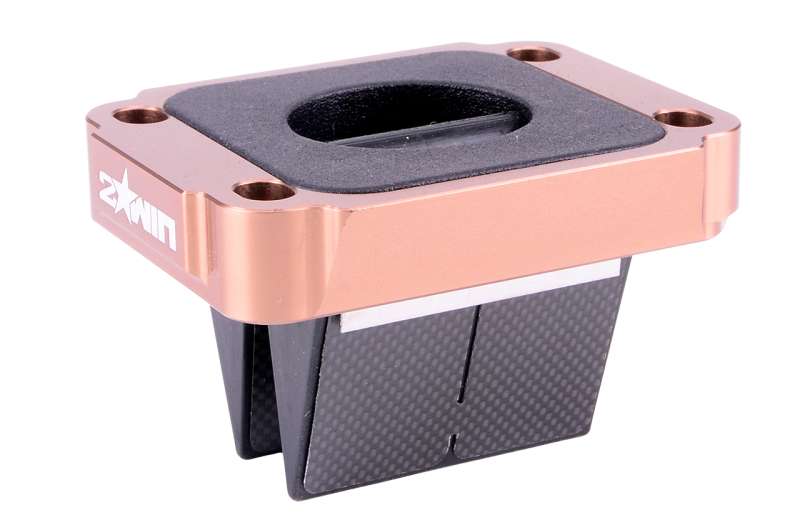 La base de la boîte à clapets est en aluminium usiné CNC, garantissant une structure sans déformations parasites et sans prises d'air. Les deux blocs où sont fixés les clapets sont vulcanisés pour assurer l'étanchéité, réduire le rebond des lamelles et limiter leur usure prématurée. Les clapets sont fabriqués en carbone de 0,28 mm d'épaisseur.