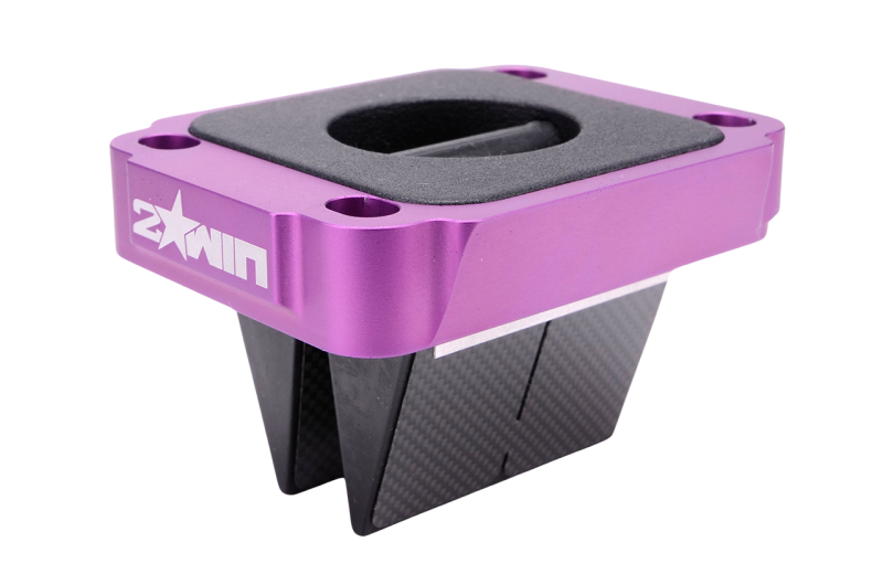 -Base en aluminium usiné CNC, anodisé en violet et ornée du logo 2WIN gravé au laser