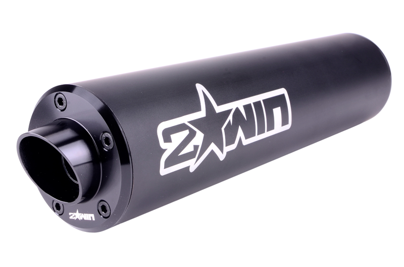 Le corps du silencieux est anodisé en noir avec le logo 2win gravé au laser. Les embouts du silencieux, fabriqués en aluminium usiné par CNC, sont également gravés et anodisés.